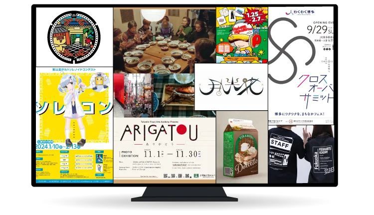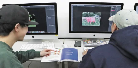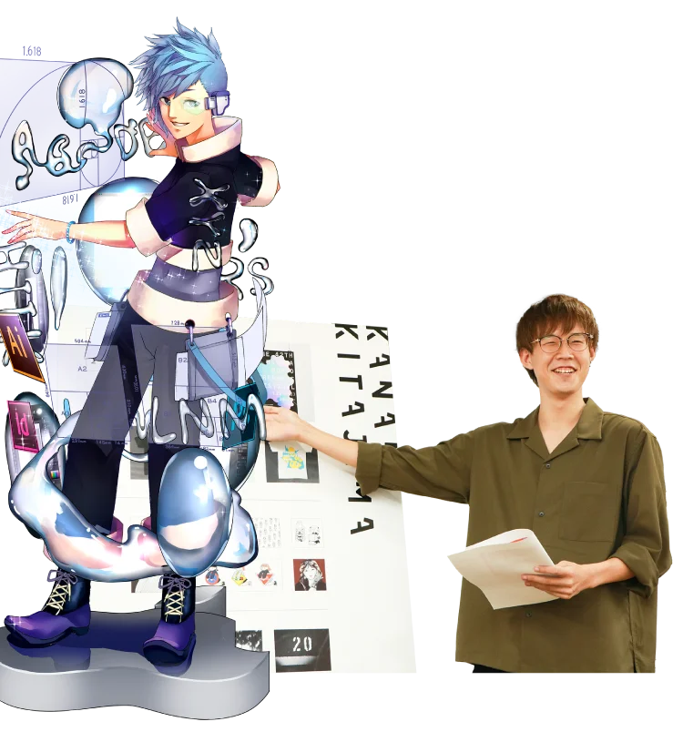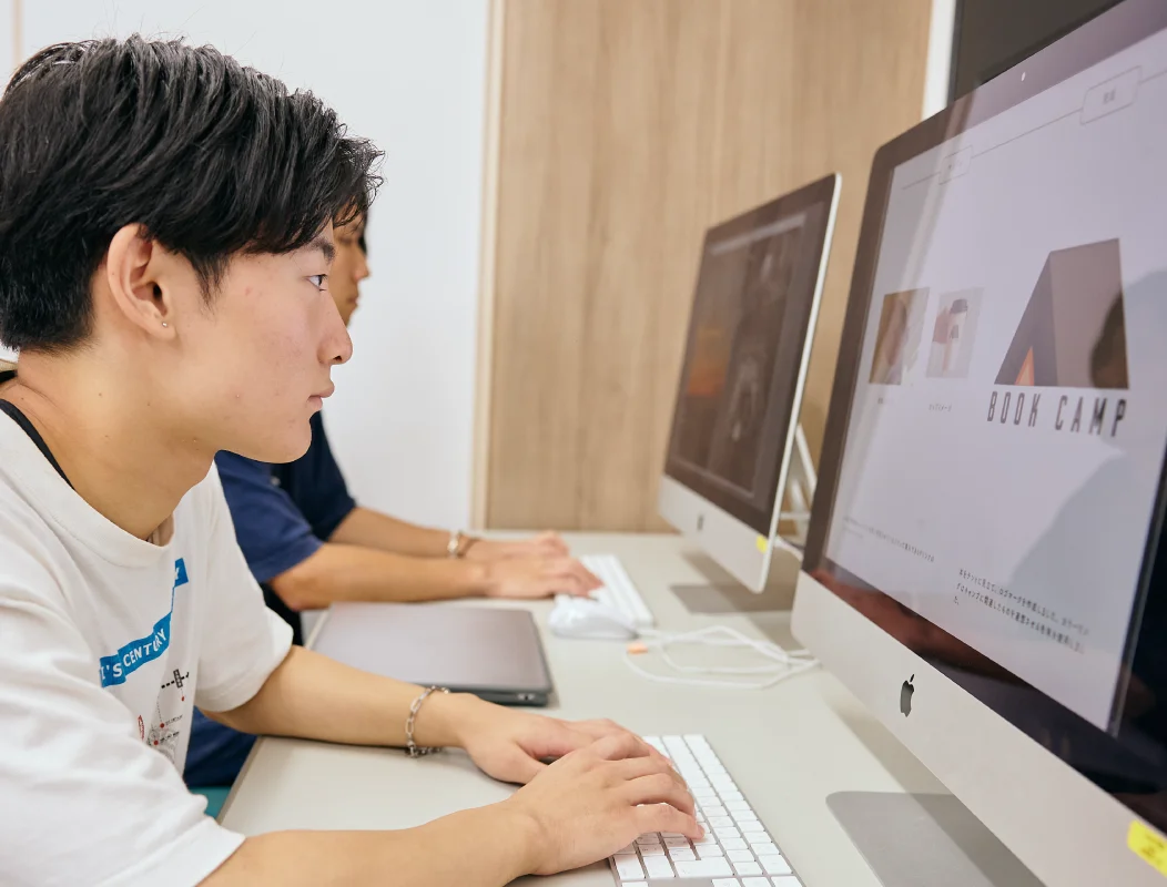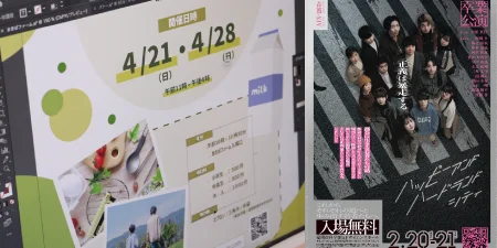 業界標準の「Illustrator」「Photoshop」などのソフト操作のスキルと技術を学びながら、デザインの基礎的やデザインの考え方を身につけます。他にもエディトリアルデザインに対応したInDesignやWeb業界で必須となってきているFigma、After EffectsやPremiere Proなど動画編集ソフトも使用します。