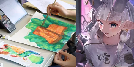 幅広い活躍を目指した福岡デザイナー・アカデミーでは、プロのイラストレーターとしてどんな依頼にも対応できるように、アナログ・デジタルともに身につけるカリキュラムを実施しています。