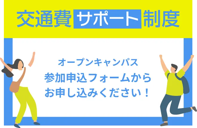 2026年3月30日まで、オープンキャンパスにお越しの皆さんへ交通費サポートを致します。気になる分野や将来やりたい職業を見つけよう!